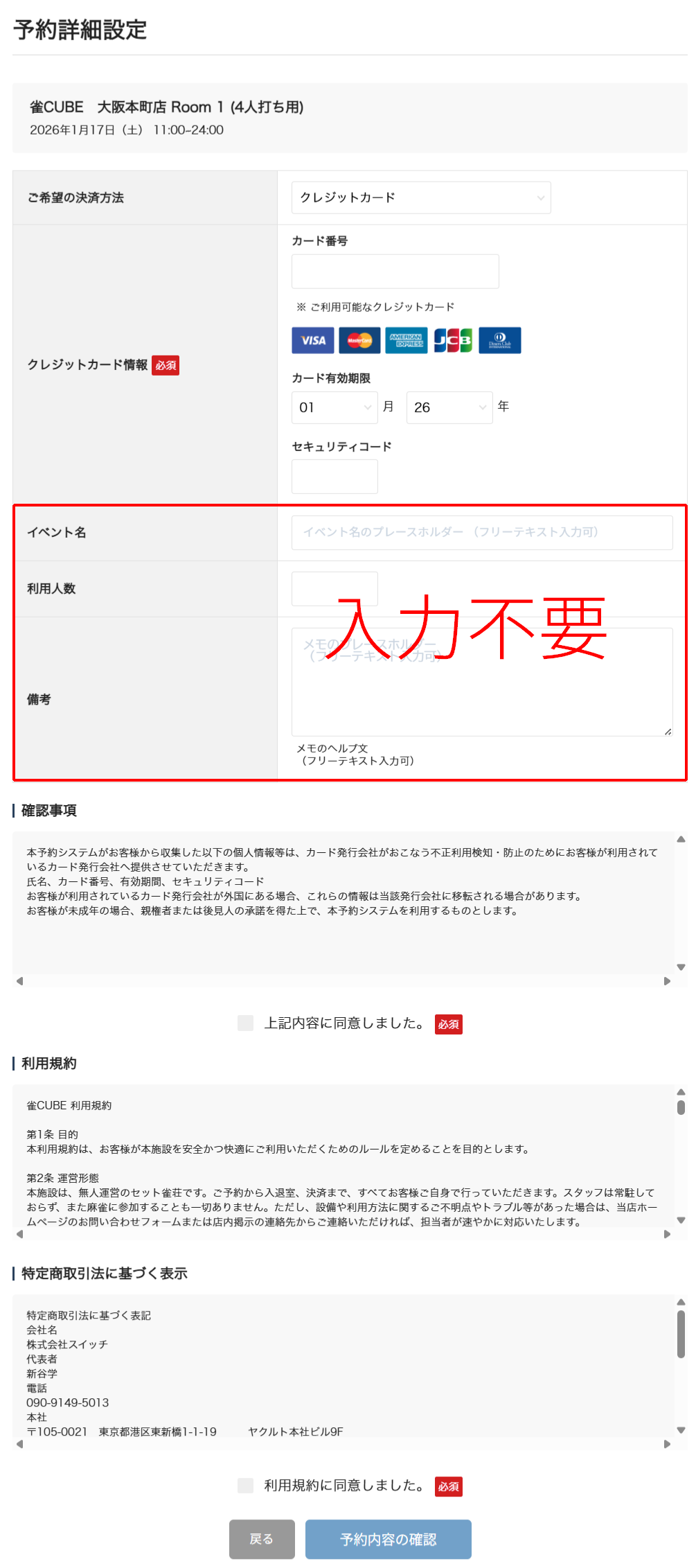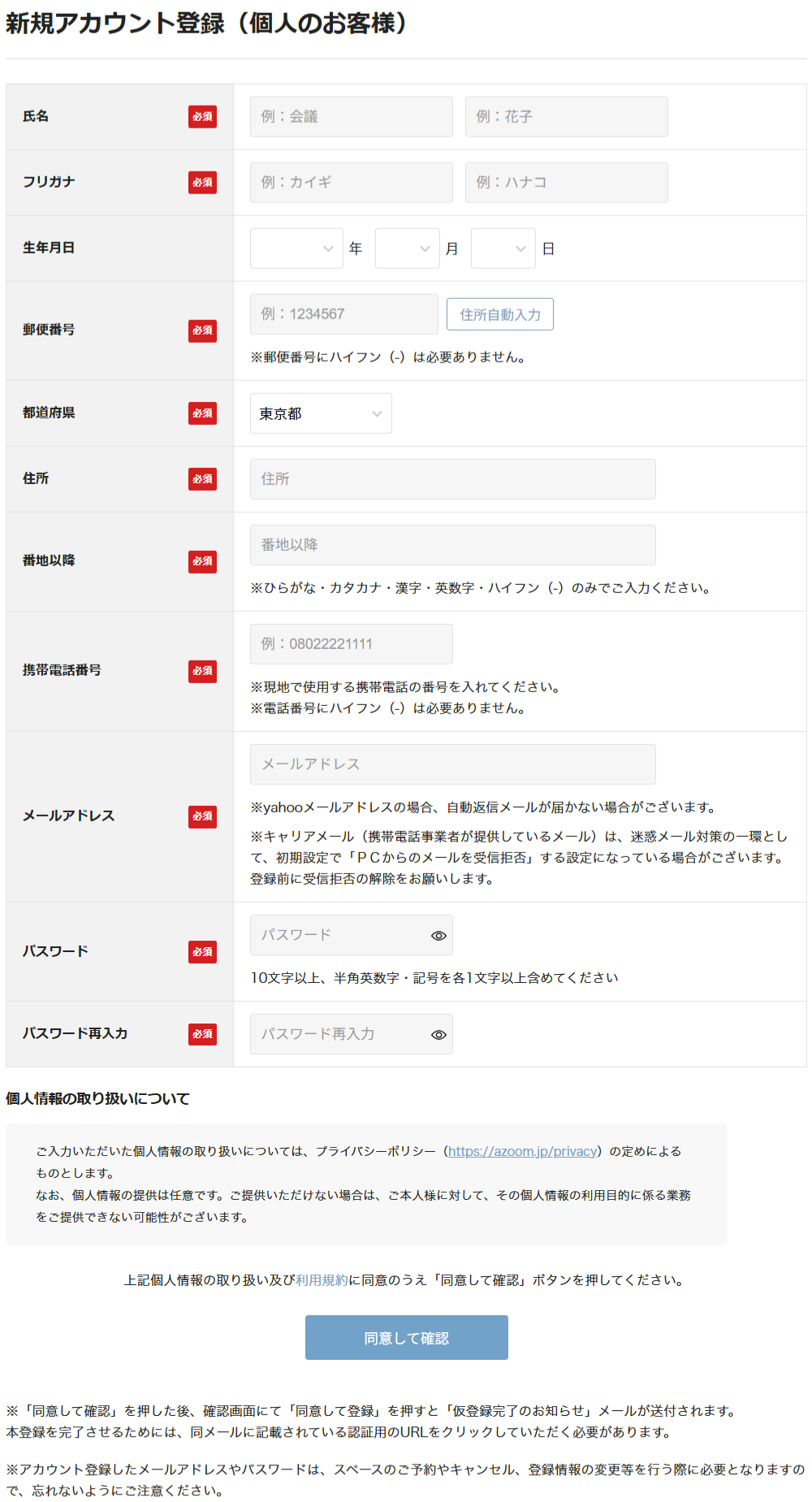 必要情報をご入力のうえ、「同意して確認」を押してください。