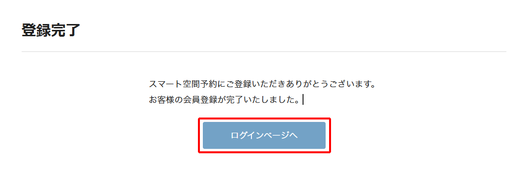 アカウントの登録が完了したので、「ログインページへ」を押してSTEP3へお進みください。