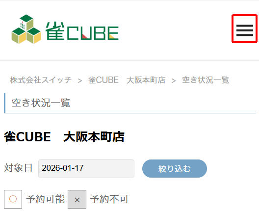 「会場名で絞り込む」から「雀CUBE」と検索ください。