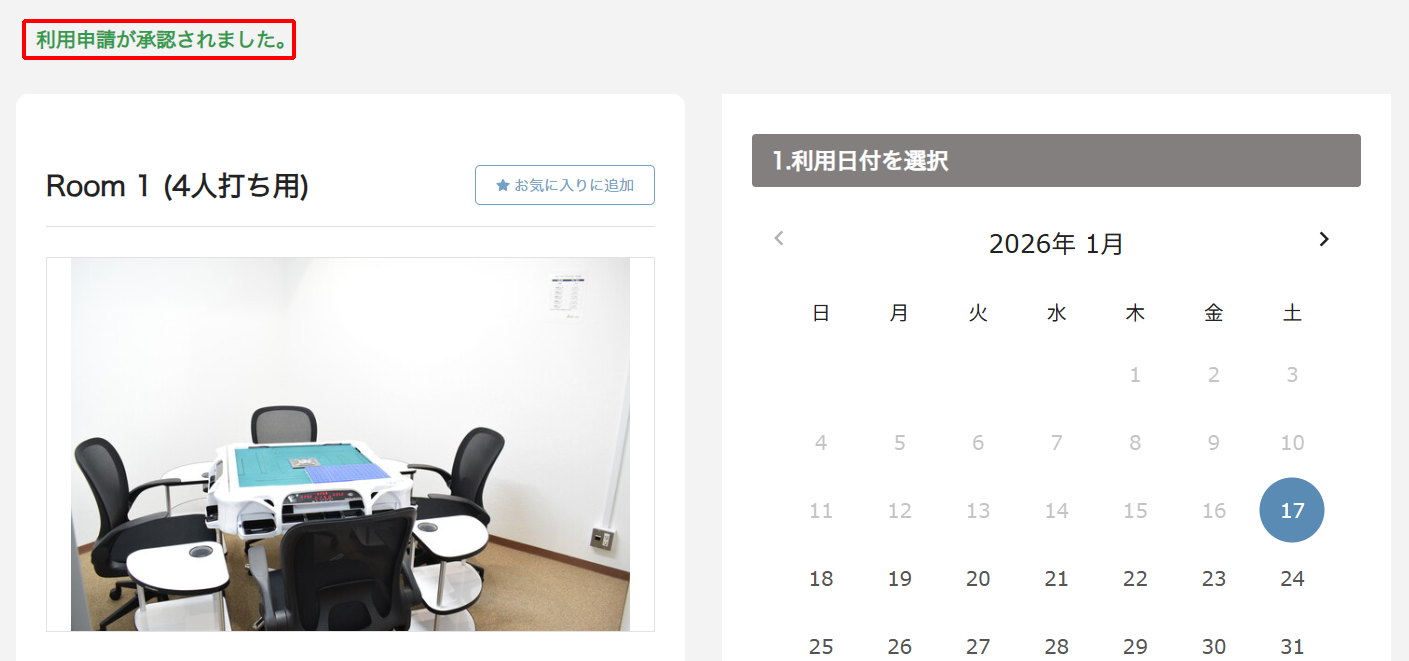 画面上部に「利用申請が承認されました。」と表示されたことを確認し、STEP7へお進みください。